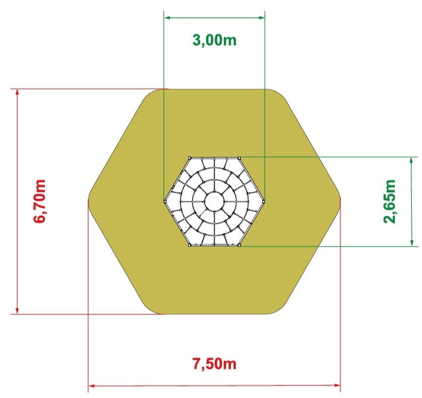 | Strefa bezpieczeństwa(dł. x szer.) | 7,50 m x 6,70 m |